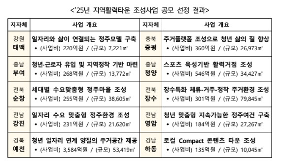 “2025 지역활력타운 조성사업 10곳 선정”