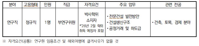 대한건설정책연구원(RICON)의 미래를 이끌어나갈 창의적이고 유능한 인재를 모집하오니, 많은 응모 바랍니다.