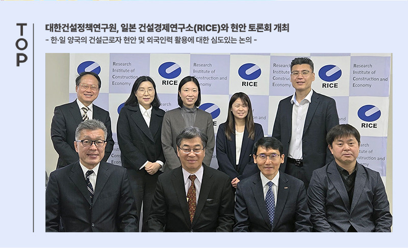 대한건설정책연구원, 일본 건설경제연구소(RICE)와 현안 토론회 개최 한·일 양국의 건설근로자 현안 및 외국인력 활용에 대한 심도있는 논의